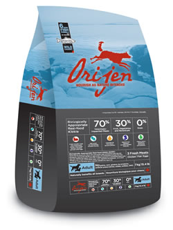 Orijen 6 Fish meets your dog's evolutionary need for abundant daily protein and is loaded with high ratios of salmon, herring and flounder from Vancouver's cool Pacific Northwest waters, plus wild caught whitefish, walleye and northern pike from our cold northern lakes, all delivered fresh and preservative-free, so they are bursting with the essential proteins and fats that nourish your dog completely.