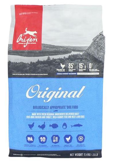 Orijen is a multi award winning super premium dry dog food from Canada. With no grains and very little carbs, ORIJEN is easily digested by all dogs. It is loaded with a diversity of nourishing meat proteins and fats, but is limited in carbohydrate.